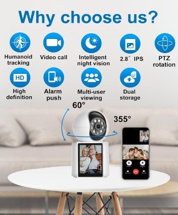 2K Two-Way Video Calling Indoor Camera with 2.8-Inch IPS Screen