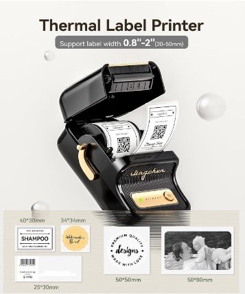 1 Roll Free Tape B21 Vintage 2 inches Width Business Thermal Label Printer Price Gun Shipping Label Tag Writer for Home Office Organization Commercial Use (Black)