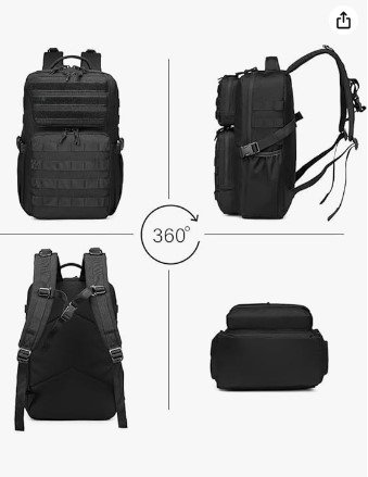 Backpack for Men Waterproof Daypack 3 Day Assault Pack Bag with Water Bottle Holder, Black, 30L Backpack