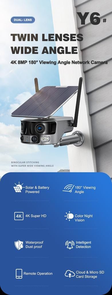 CRONY Y6 WiFi-4K-8MP-180° Wide Angle Solar Battery Camera with 6W Solar Panel