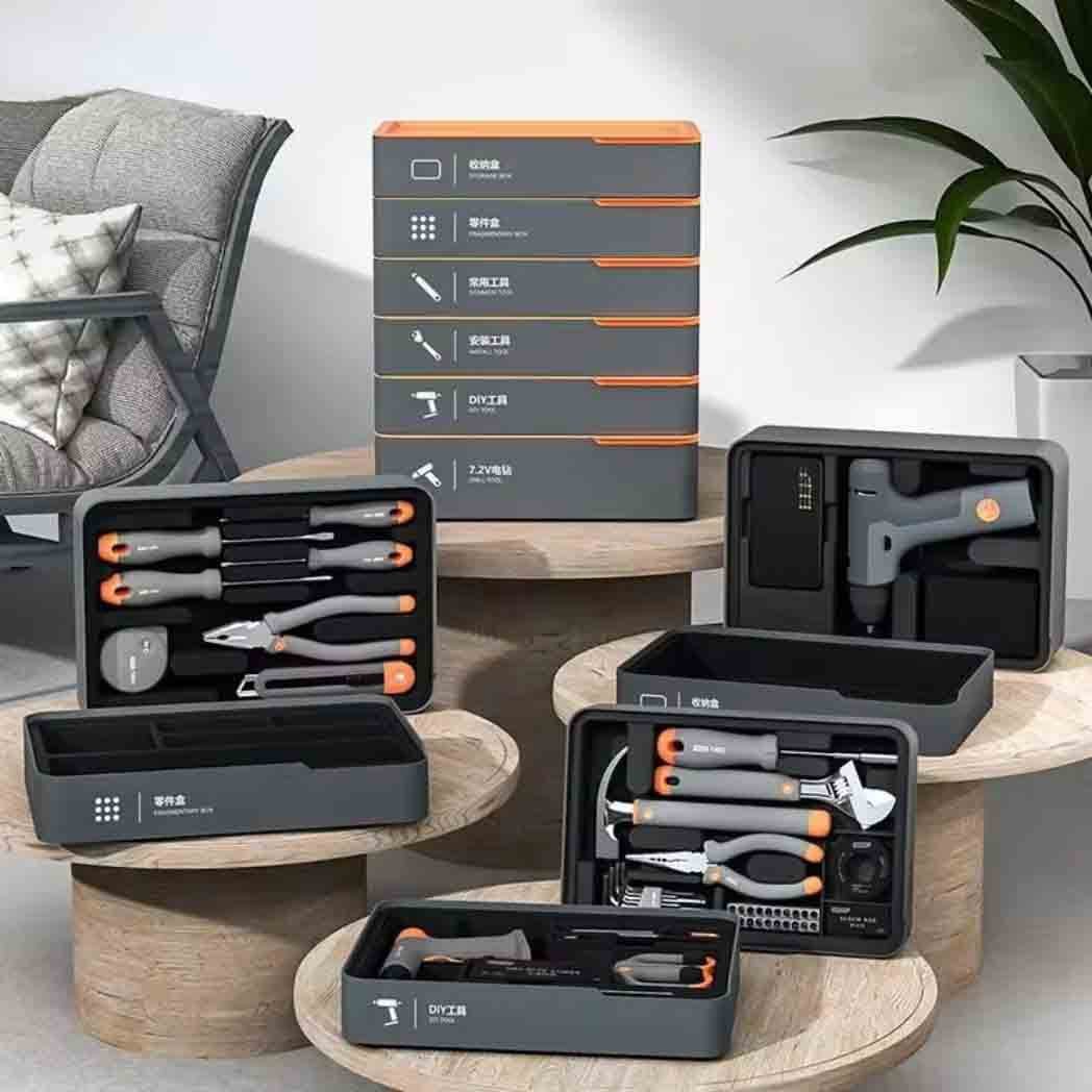 Deli electrician tool set household maintenance hand tools box set t-box wrench knife pliers screwdriver combination tool.