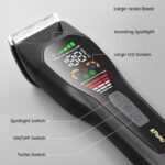 - Adjustable Lighting and Safety Lock: Equipped with dual-level adjustable auxiliary lighting, this clipper ensures precise grooming even in low-light conditions. The travel-friendly safety lock prevents accidental activation and ensures safe storage, making it convenient for trips.