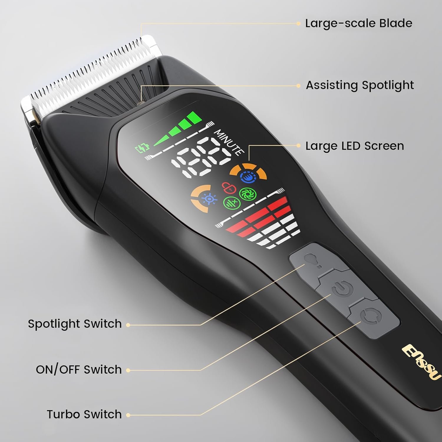 ENSSU Hair Clippers for Men Professional, Rechargeable Hair Trimmer Cordless Barber Clippers with 50mm Blade, Large LED Display, 180-Minutes Runtime for Home Hair Cutting