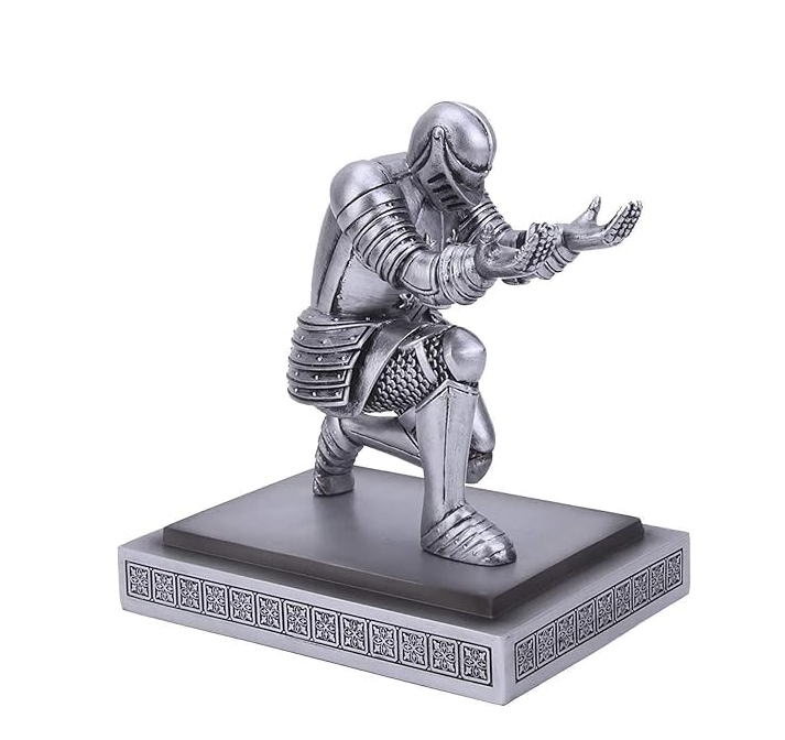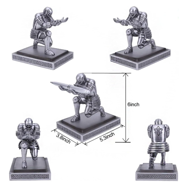 Executive Knight Decorative Pen Holder, Silver Metal Desktop Stationery Organizer, Office Desk Accessory, Personalized Gift