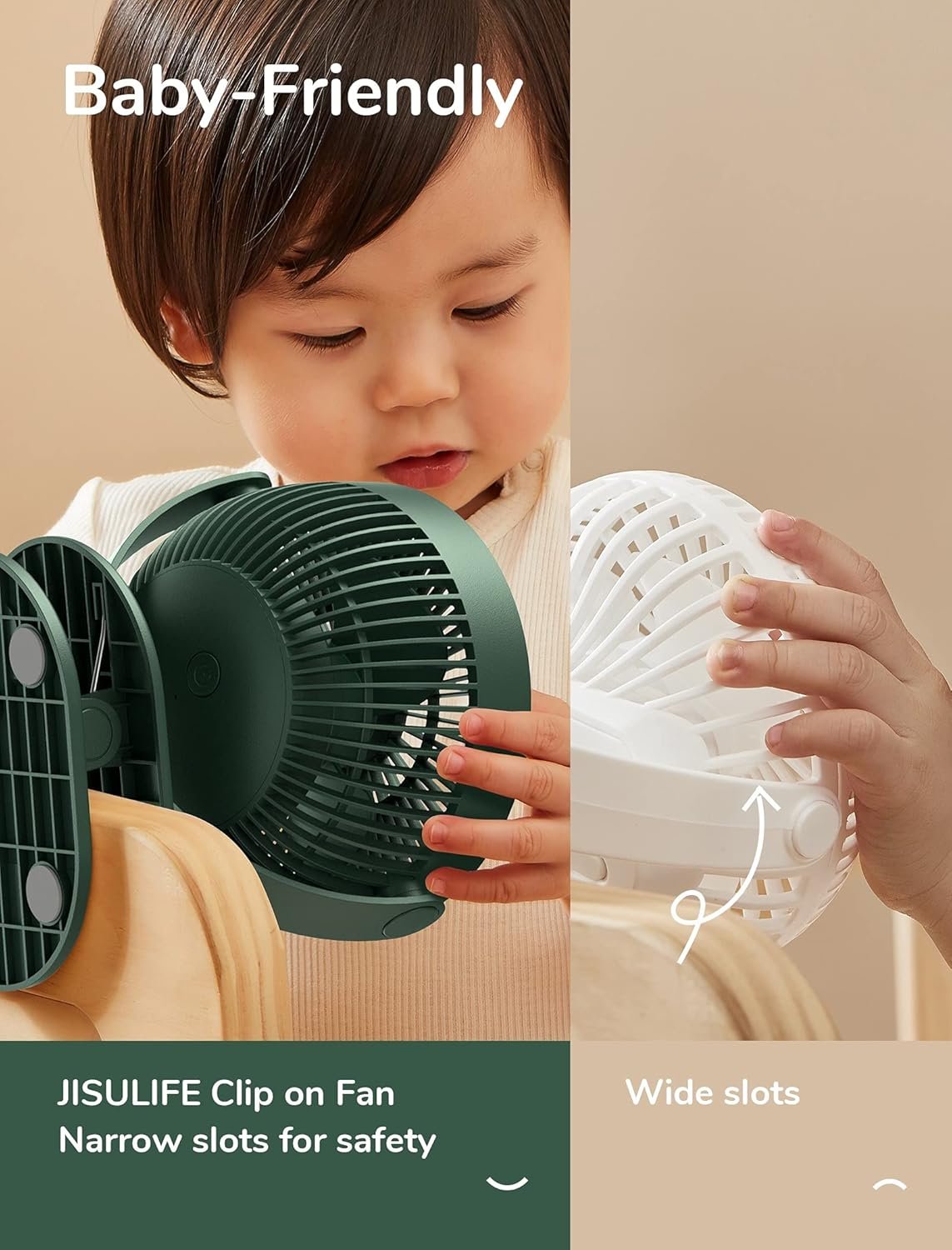 - 【Baby-Friendly Design】JISULIFE Baby Stroller Fan narrows fan cover gap to 0.2in, the baby’s little fingers can’t get to the blade, which is safe to use for a toddler.