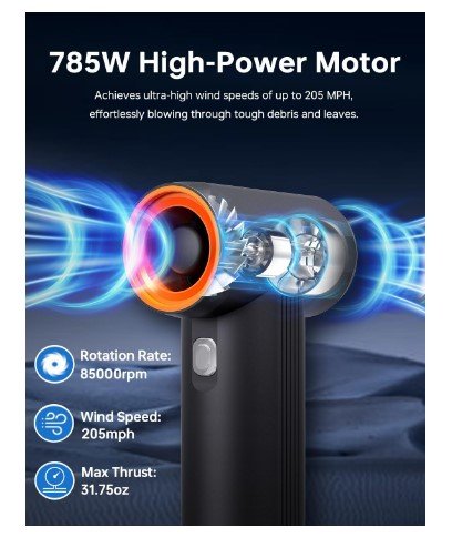 KiCA Car Dryer Air Blower – Maximum Power 785W & 205MPH Wind Speed