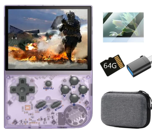 KJArrow RG35XX Retro Handheld Game Console Purple, 3.5 Inch IPS Screen Gameboy Built-in 5000+ Games