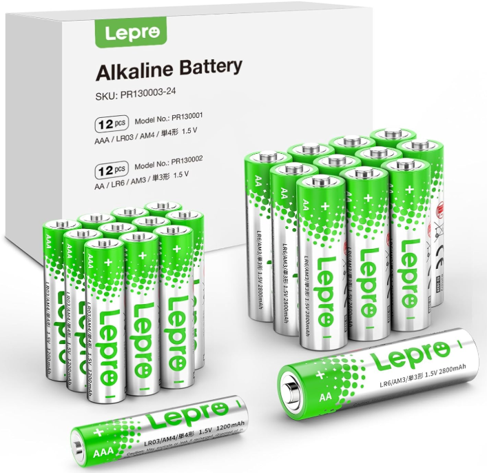 Lepro AA & AAA Batteries 24 Pack, 1.5 Volt Alkaline Battery with High Capacity, Anti-Leakage, Long Lasting Power,