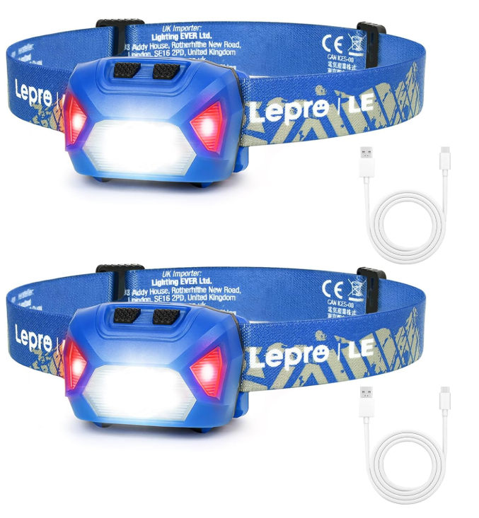 Lepro Headlamp Rechargeable 2-Pack BULE, 2000 Lux Super Bright LED Headlamp with Red and White Light