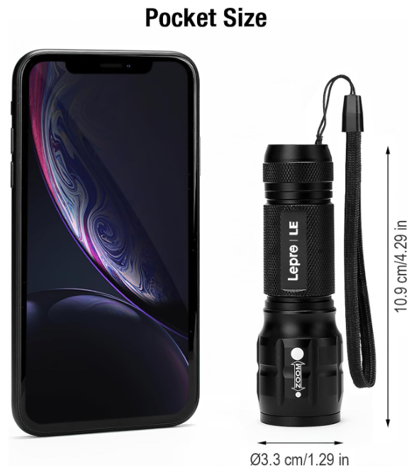 Lepro LED Torch Battery Powered, Small Bright Flashlight, Adjustable Focus, Water Resistant Pocket Torch,