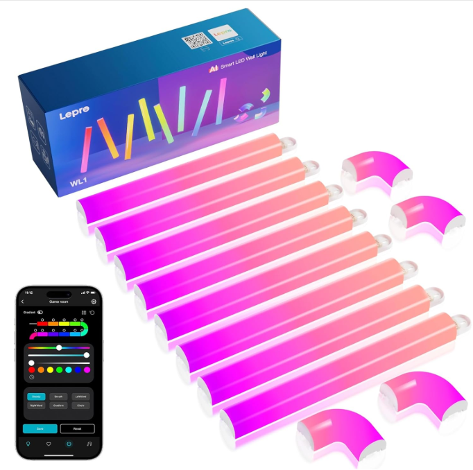 Lepro WL1 AI Smart Wall Light, Music Sync LED Light Bar, Voice Control, Segmented DIY,