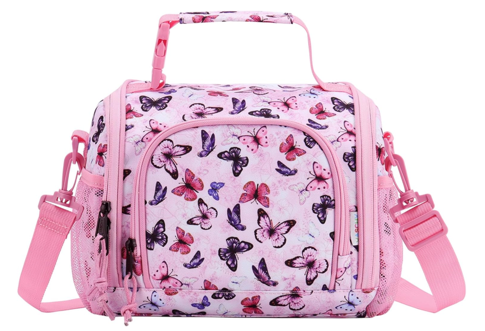 Lunch Bag for Kids, Vaschy Cute Insulated Lunch Box Bag Cooler for Men Women Daycare Kindergarten Picnic Pink Butterfly