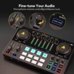 - Enjoy a personalized podcasting atmosphere: Equipment with 6 reverb modes, You can adjust the time and depth of reverb freely, 12-step auto-tune, 3 modifiable tones (Treble, mid-range, bass), and pitch changer knobs. Each microphone input is independently controlled. Pro features like sidechain, music only, and loopback switch are also included.