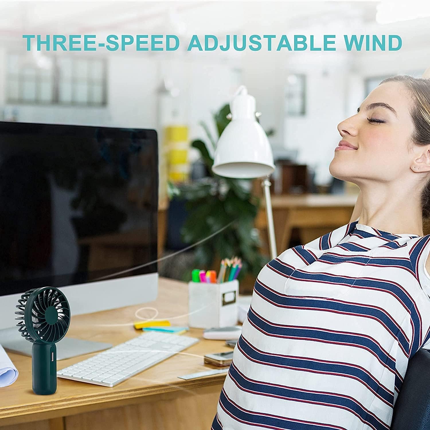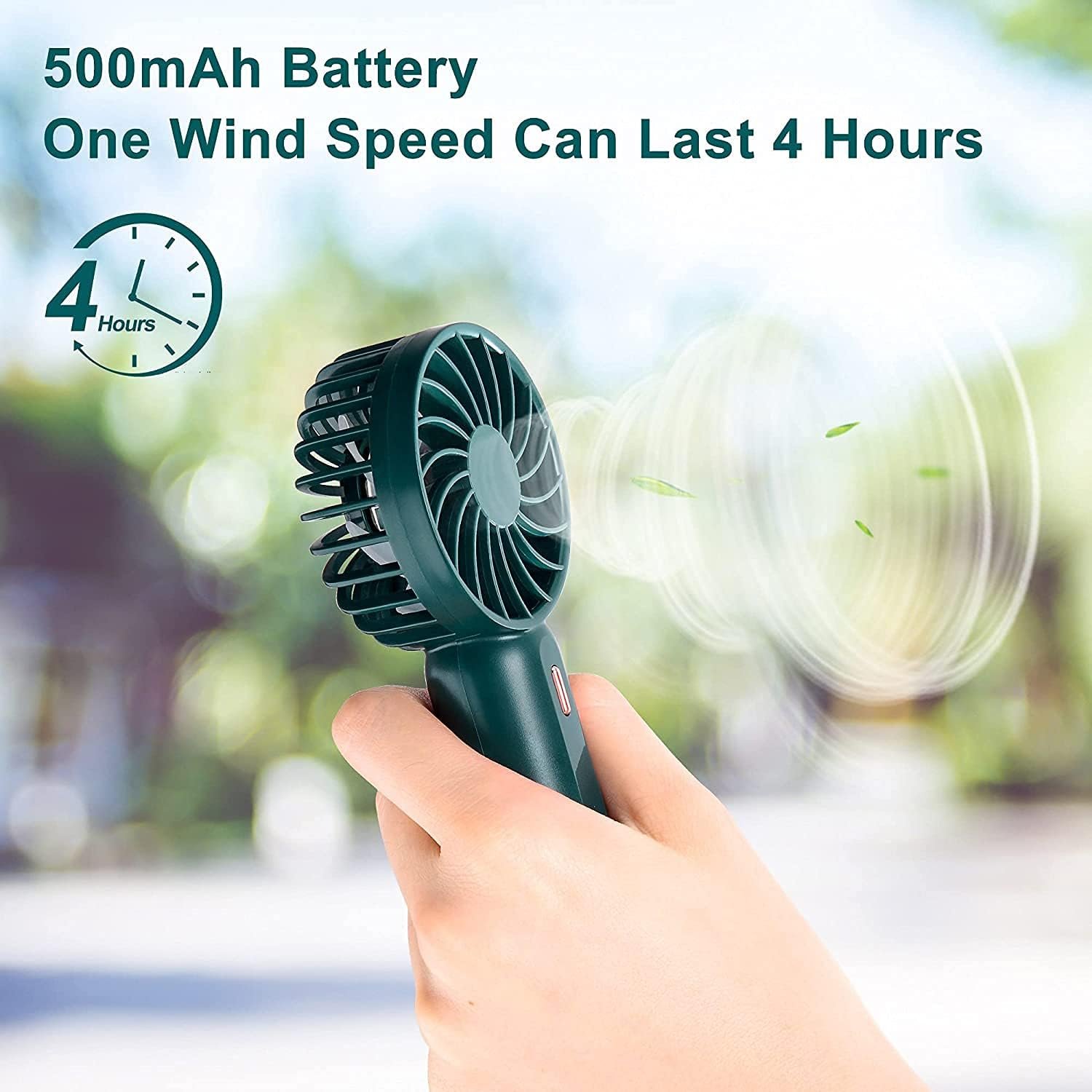 Padom Handheld Mini Fan Battery Operated Small Personal Portable Fan Speed Adjustable USB Rechargeable Fan for Kids Girls Women Men Home Office Indoor Outdoor Travelling (Green)