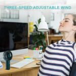 - 【3 Speeds Adjustable】: This mini handheld fan has 3 adjustable speeds which can be switched easily by pressing the button. Low speed for a soft breeze at 3500RPM that can accompany you sleeping quietly. Medium speed for cool wind, and high speed produces strong airflow at 5800RPM rotation speed, help you cool down in seconds.