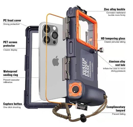 Professional Waterproof Snorkeling Case 50FT Underwater Video Protective Case