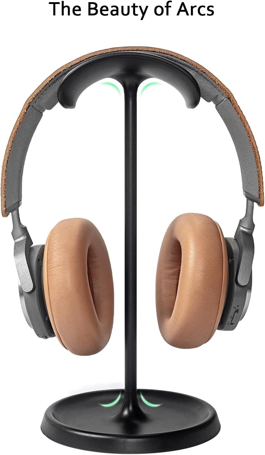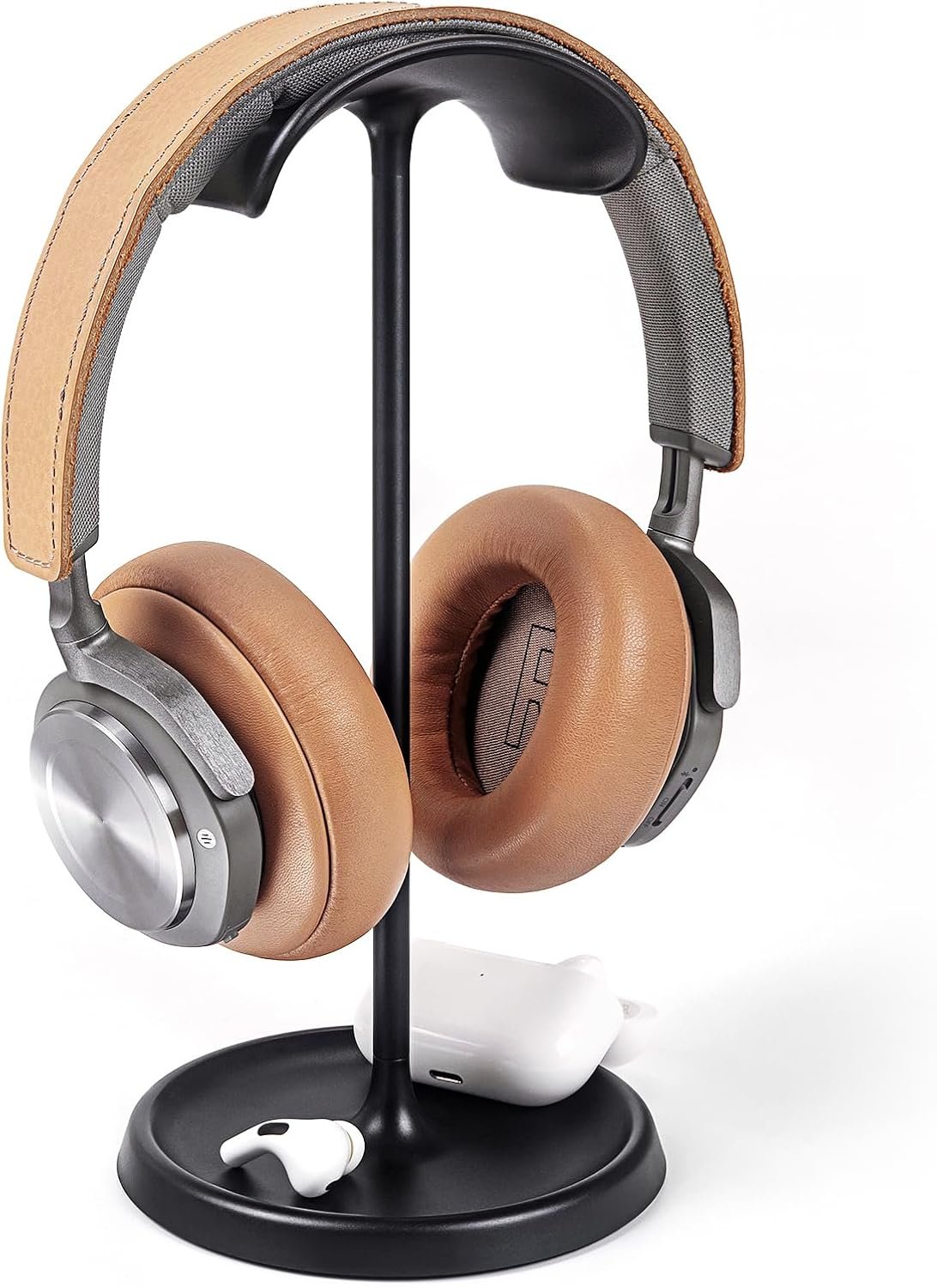 QinCoon Headphone Stand, Curved Headset Stand with Storage Tray, Heavy Base Gaming Headset Holder for AirPods Max, AirPods, AirPods Pro, Beats, Bose, Sony and More (Black)