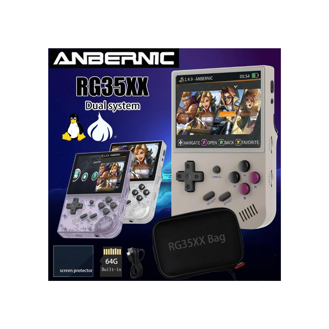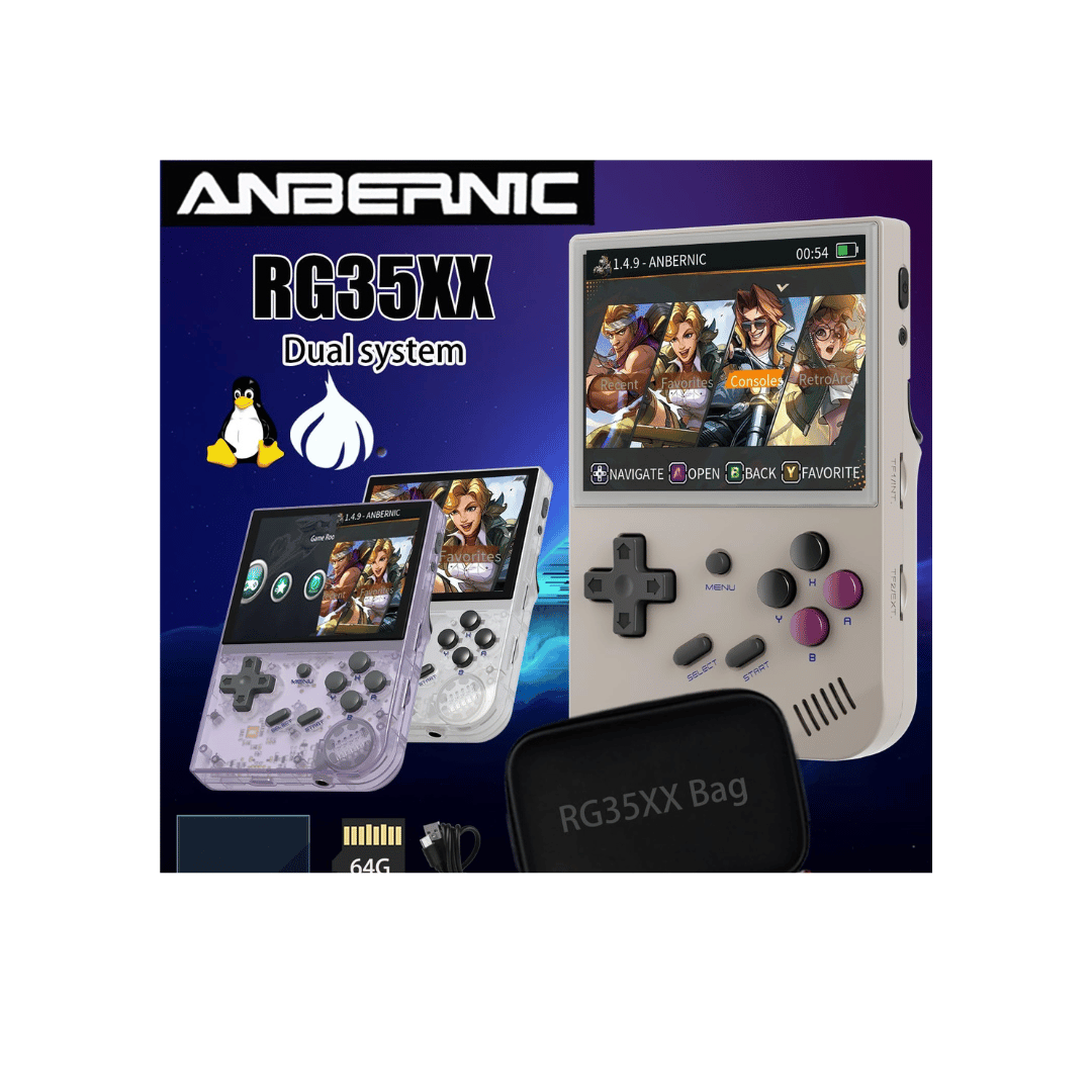 - 【ANBERNIC RG35XX Game Console with Linux and Garlic Dual Stylem】RG35XX Comes with 64G TF Card Preloaded 5570 Classic Games,Support users to download games in relevant 15 kinds of games formats.