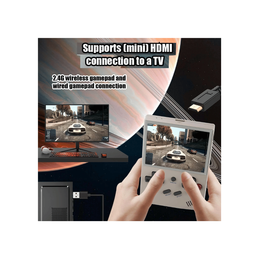 - 【Support 2.4G Wireless Gamepad and Wired Gamepad Connection】 HDMI and TV output function makes the small screen become big screen in seconds, and the joystick connection supports multiplayer games, so you and your friends can enjoy the game together.