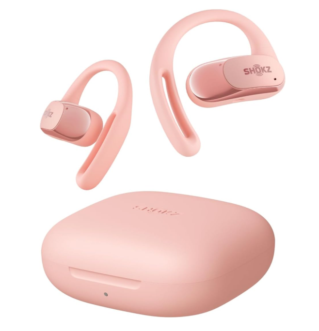 SHOKZ OpenFit Air Open-Ear Headphones, True Wireless Bluetooth Earphones with Microphone, Earbuds with Air Earhook, Fast Charging, 28h Playtime, IP54 Waterproof for Workout – Pink