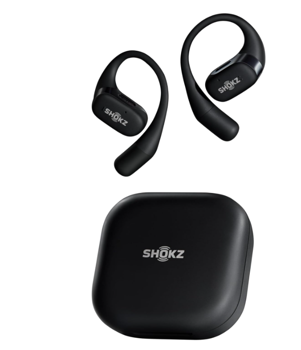 SHOKZ OpenFit Open-Ear Headphones, True Wireless Bluetooth Earphones with Microphone, Earbuds with Earhook, Fast Charging, 28H Playtime, IP54 Waterproof, Black, with Carrying bag