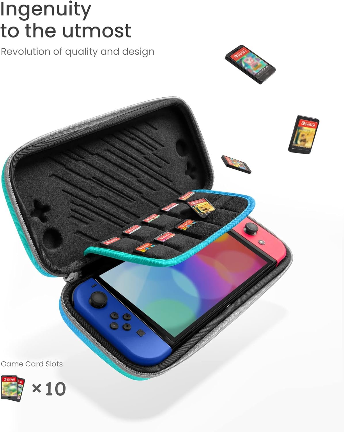 • Military-Grade Protection: Our nintendo switch oled case crafted out of water-repellent, and durable EVA Hard materials, passed the Military-Standard-Drop-Test, the case provides maximum protection for your Switch against the knocks, bumps, and drops that might happen on the go.