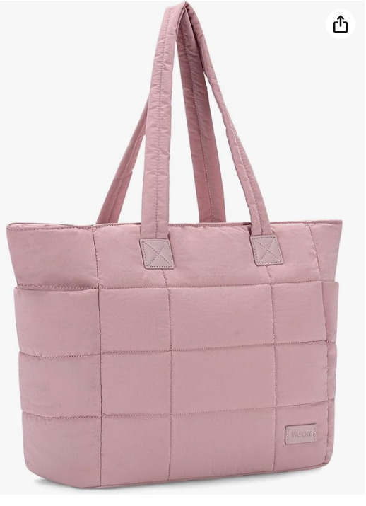 Tote Bag for Women, VASCHY Lightweight Quilted Puffer Work Bag with 15.6inch Laptop Zipper Shoulder Bag for Teacher/Travel/Gym