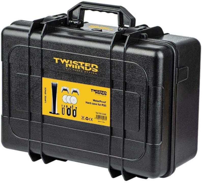 Twisted Minds PS5 Carrying Case – Hard Shell Travel Case Compatible with PlayStation 5 Console, Controllers, Games and Accessories – Waterproof & Protective – Customizable Foam Interior