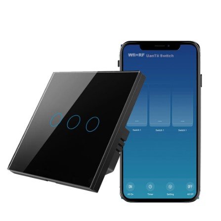 UanTii Smart Switch Tuya Wifi RF433 Touch Switch, Works (3gang, Black)