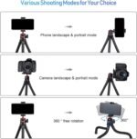- ▶【Camera Flexible Tripod】– The octopus camera tripod can be used as a tripod or selfie stick, the phone tripod can wrap on lampposts, fence posts, tree limbs, chairs, doorknobs etc
