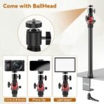 • Come with 1/4 BallHead, 1/4 to 3/8 Screw, Cell Phone Clip, light adapter, which is a perfect choice for supporting DSLR camera, smartphone, panel light, etc. It is suitable for making up, live streaming videography, photography, or other shooting work