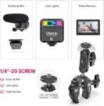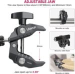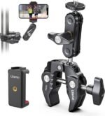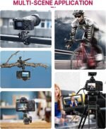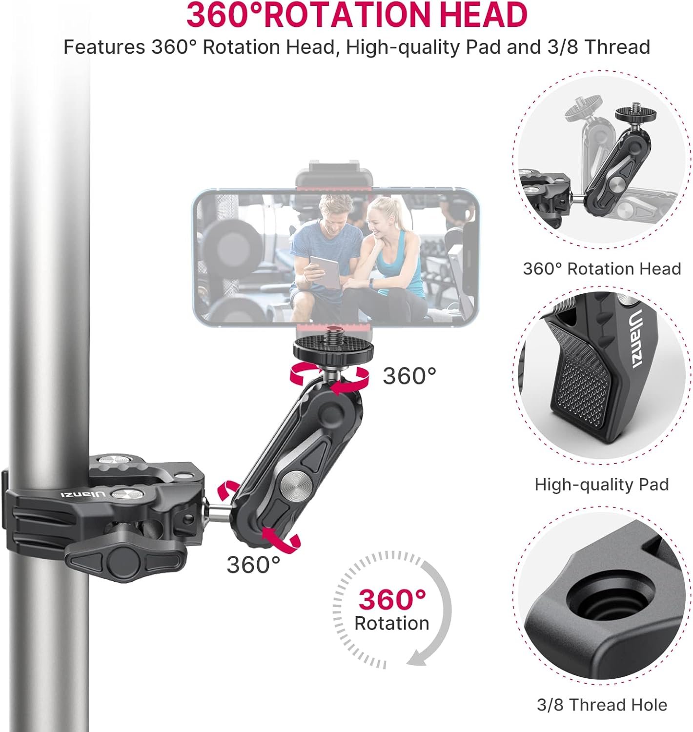- Standard 1/4” and 3/8” female thread: 1/4” and 3/8” female thread on the back-side of clamp help you to mount a small camera, monitor, LED video light, microphone, speedlite, and more. Come with a phone tripod mount, it is also compatible for smartphone