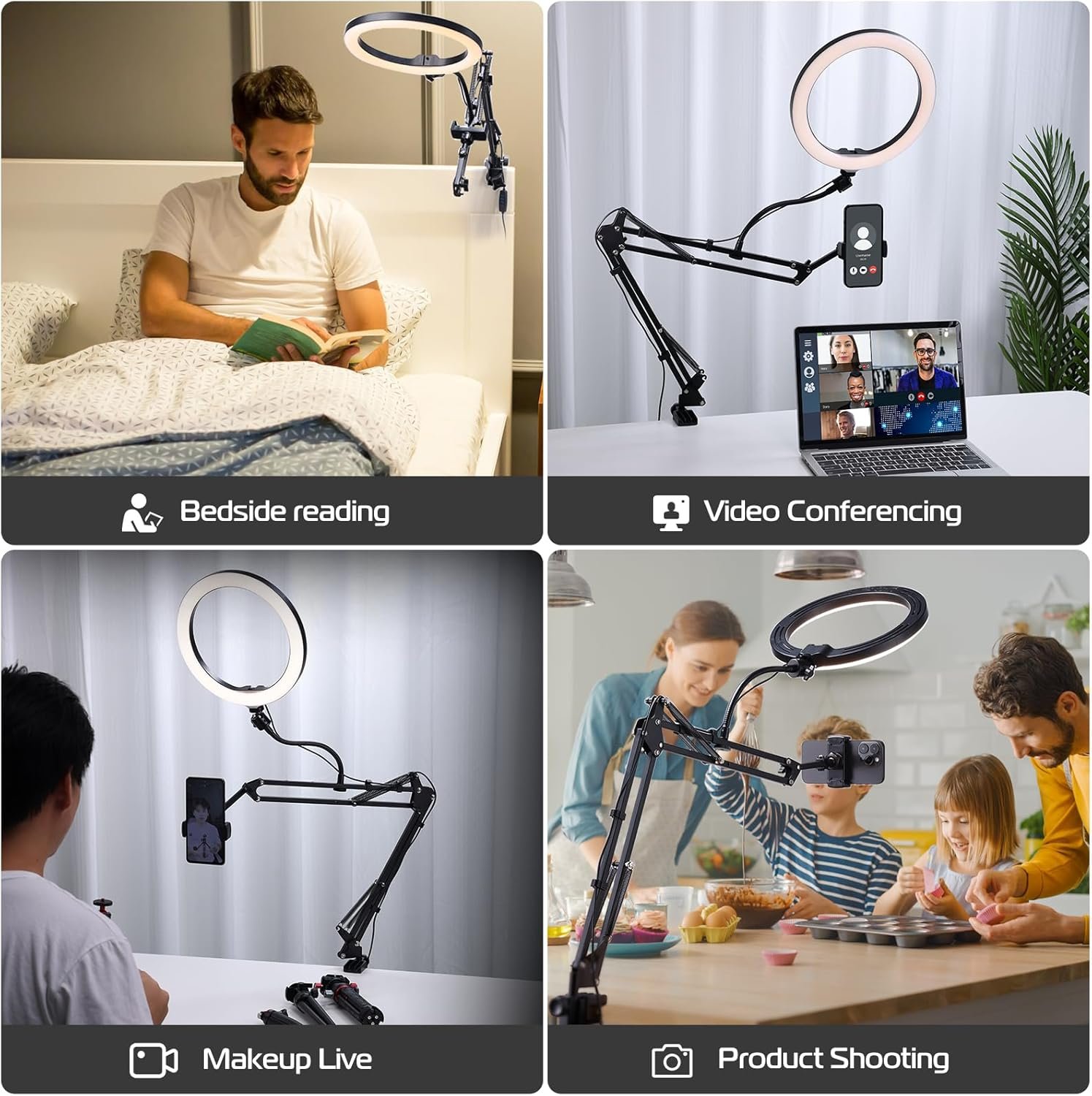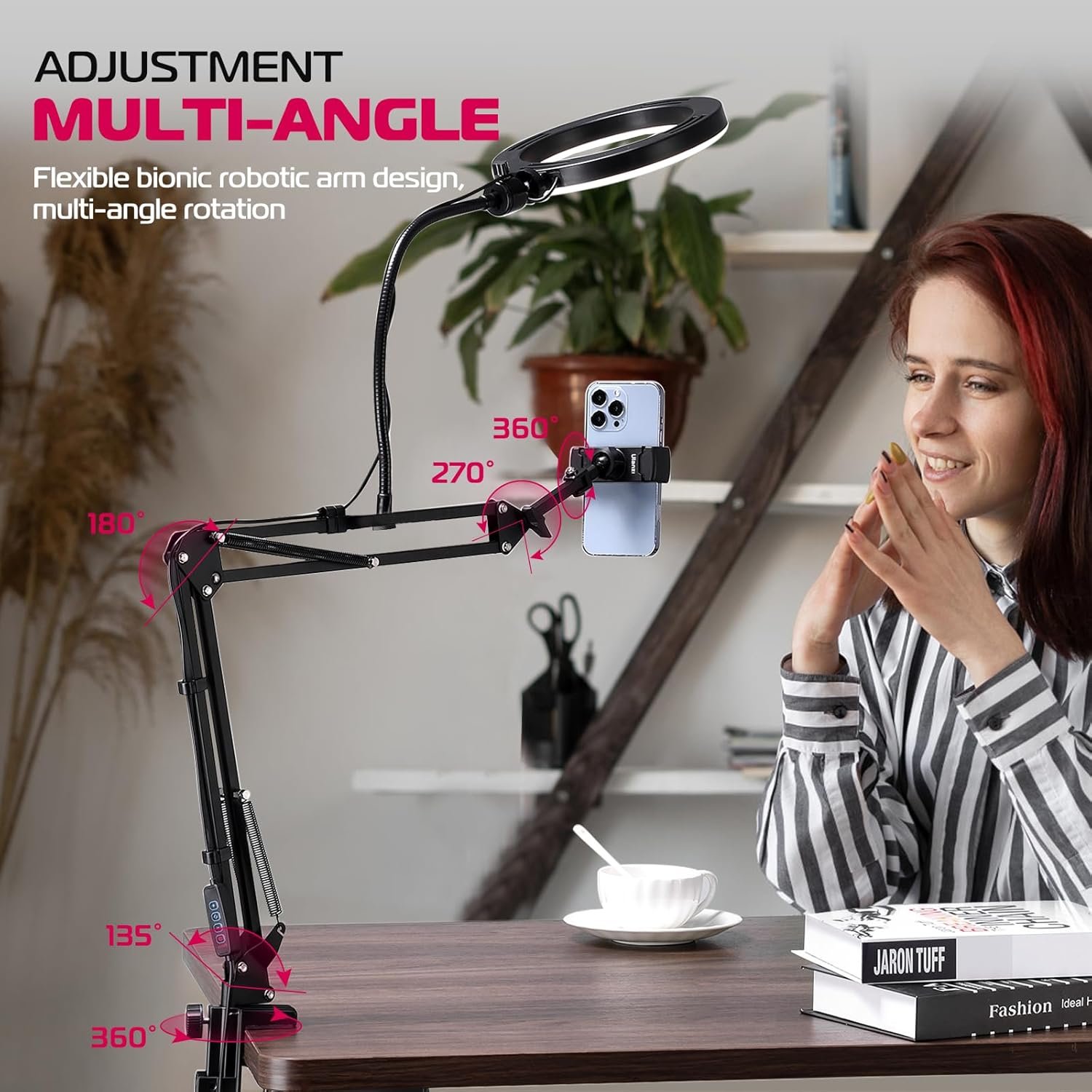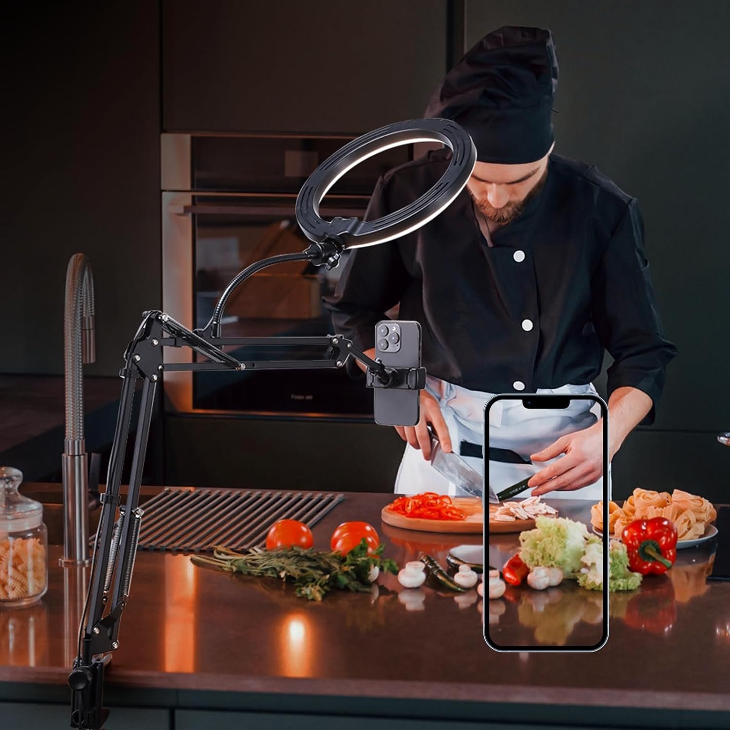 ULANZI [Upgraded] TH03 Phone Stand for Recording, Overhead Phone Mount with Ring Light, Adjustable Desk Arm Stand for iPhone, Desktop Stand for YouTube Starter Live Stream Cooking Painting Nail