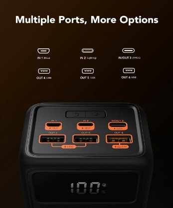 Portable Charger High Capacity Fast Charging USB C Battery Pack with Cables & LED Display and 3 gear Strong Flashlights & Compass for Outdoors