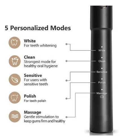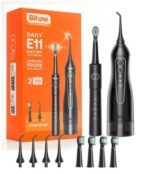 5 Selectable Modes and 4 Heads Whitening Toothbrush, 3 Modes and 4 Nozzles Oral Irrigator Black for Travel || E11+F5020E-BLK